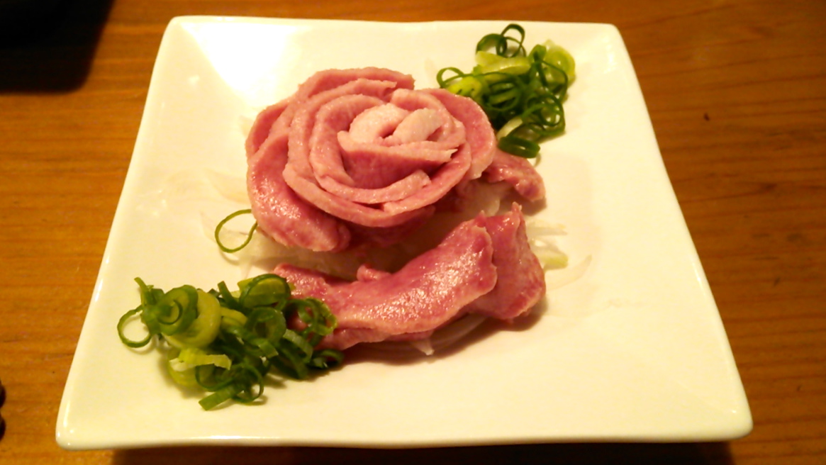 とても美味しくいただいた「タン刺し」はお塩とごま油で。お値段驚きの¥480-!!! メチャ旨です。