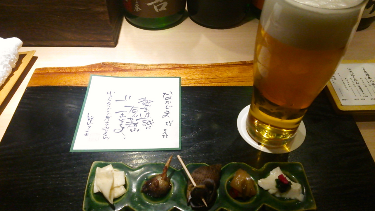 通されたカウンターの予約席には”チョット嬉しい”手書きのウェルカムメッセージが、、、勉強になりマス!