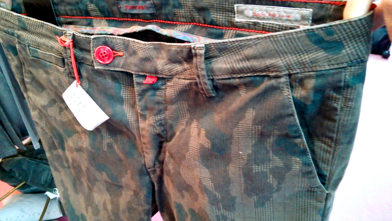 コットンにグレンチェックのプリント、更にその上から迷彩カモのプリントを施したイタリア「BARONIO」のパンツ。