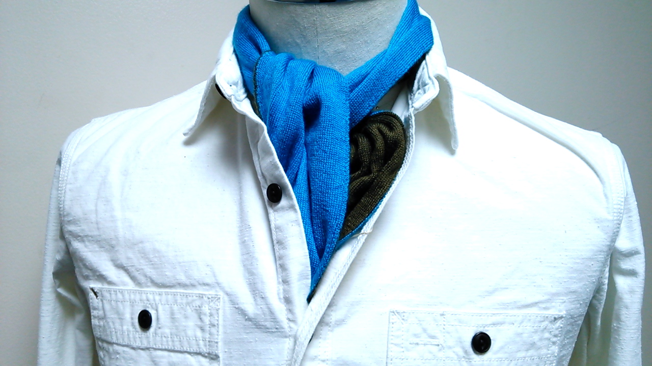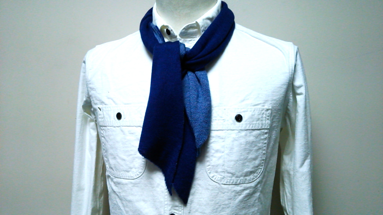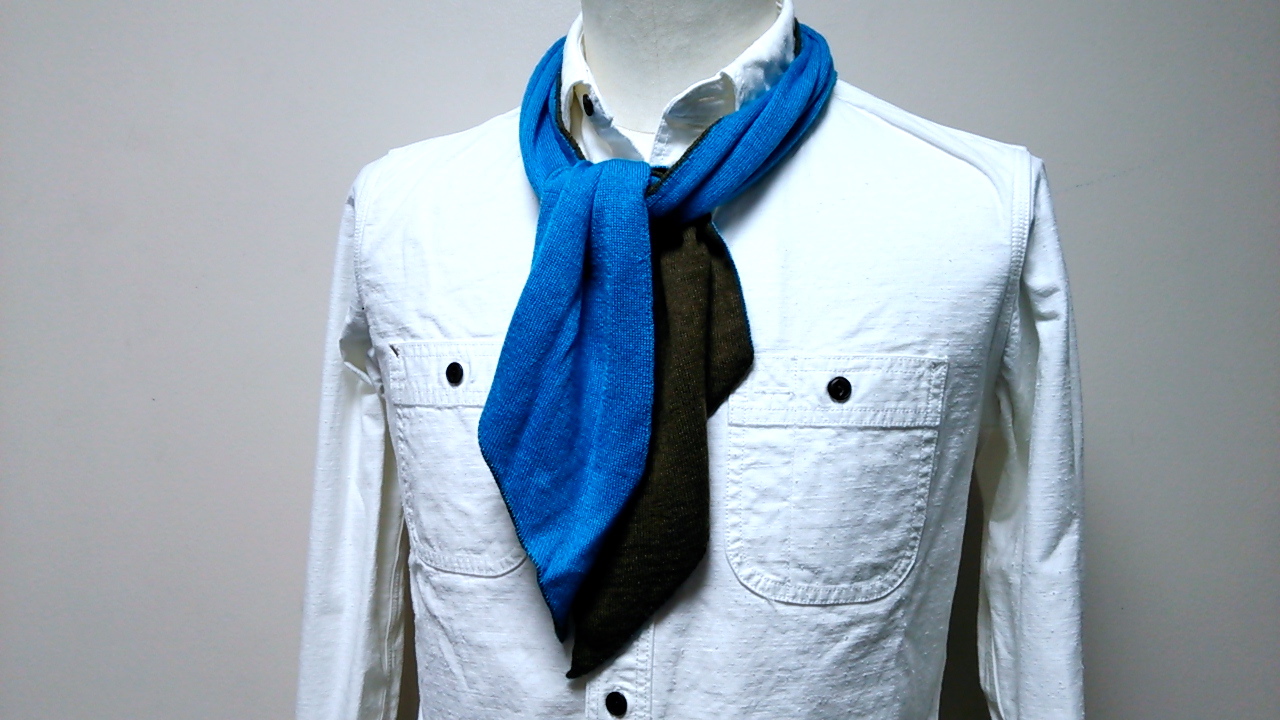 ネイビーブルー×インディゴブルーのダブルフェイス。巻き方次第で色々な表情、ニュアンスが楽しめます。