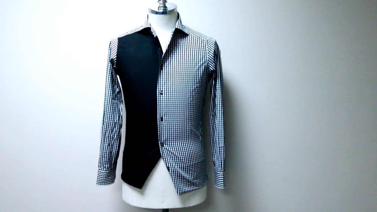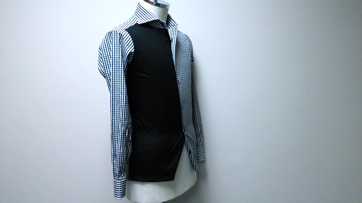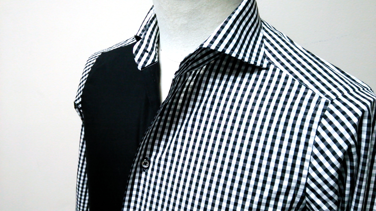 下前をブラックで切り替えた黒のギンガムチェックのシャツです。