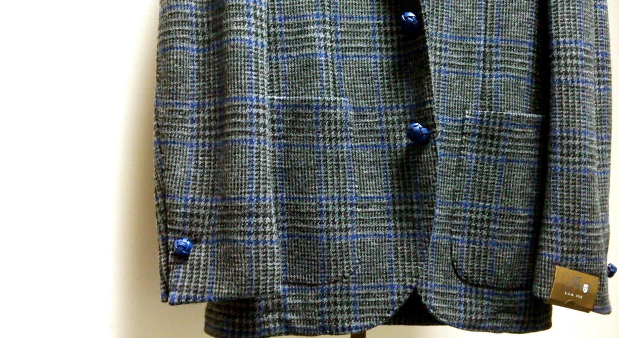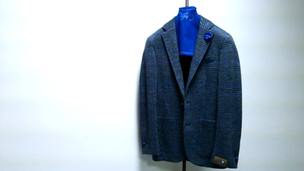 クラシックでやや大柄なグレンチェックにブルーのオーバーペンが良いアクセントになっています。