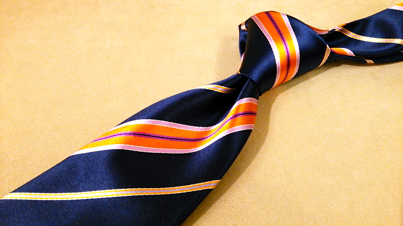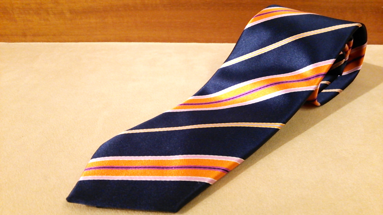 本日ご紹介するのは高密度サテンの質感がすばらしいネイビー×オレンジのレジメンタルです。