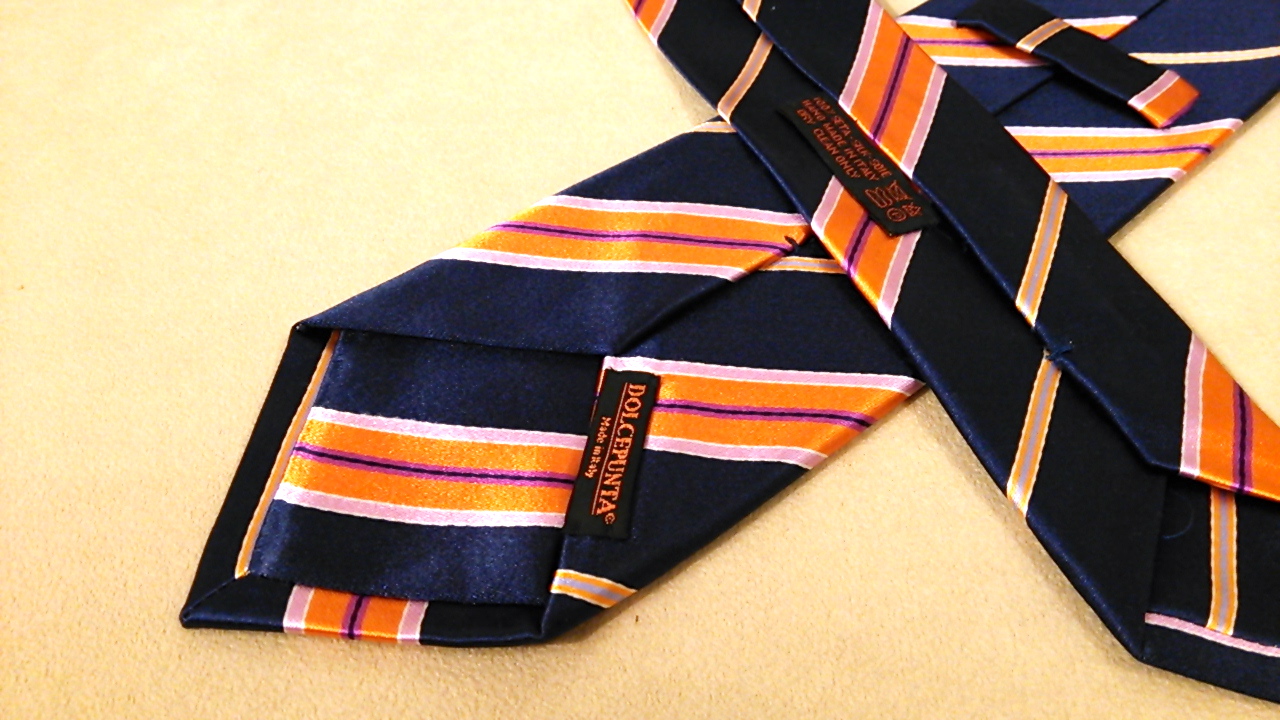 DOLCEPUNTA/ドルチェプンタのおさらい・・・イタリアのブリオーニ社で22年間ネックウェアーの縫製に携わった現オーナーであるローランド・スカペラート氏が、2002年にイタリア・ペスカーラで創業したハンドメイドのネクタイメーカーです。 4ホールド、7ホールド、11ホールドまでのモデルを最高品質のヘビーオンスなシルク生地に加え、薄い毛芯をダブルで使い、一針一針時間をかけて仕上げる最高級ネクタイメーカーです。またイタリアらしい発色の明るい美しい色柄のシルク生地を多数取り扱っている事が特徴でもあります。