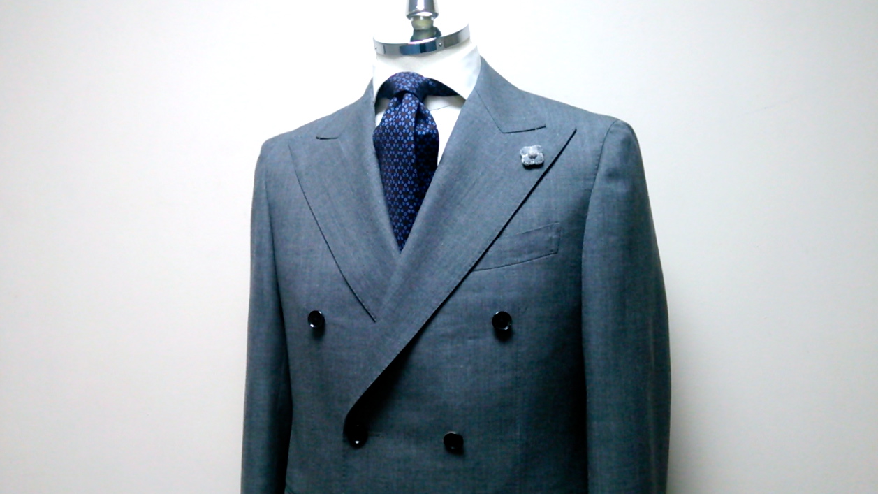 ハリソンズ・フロンティア特有のしっかりとした生地とボリュームのあるラペルが相まってとても雰囲気のあるスーツに仕立て上がりました♪