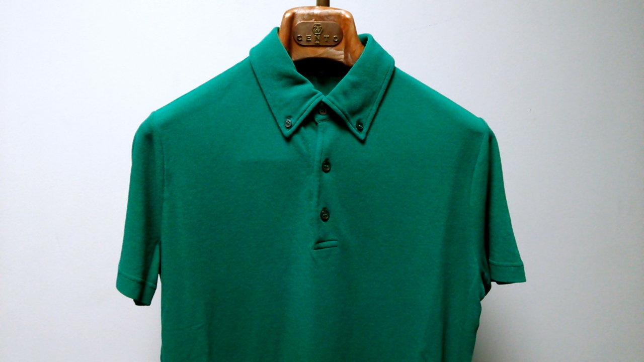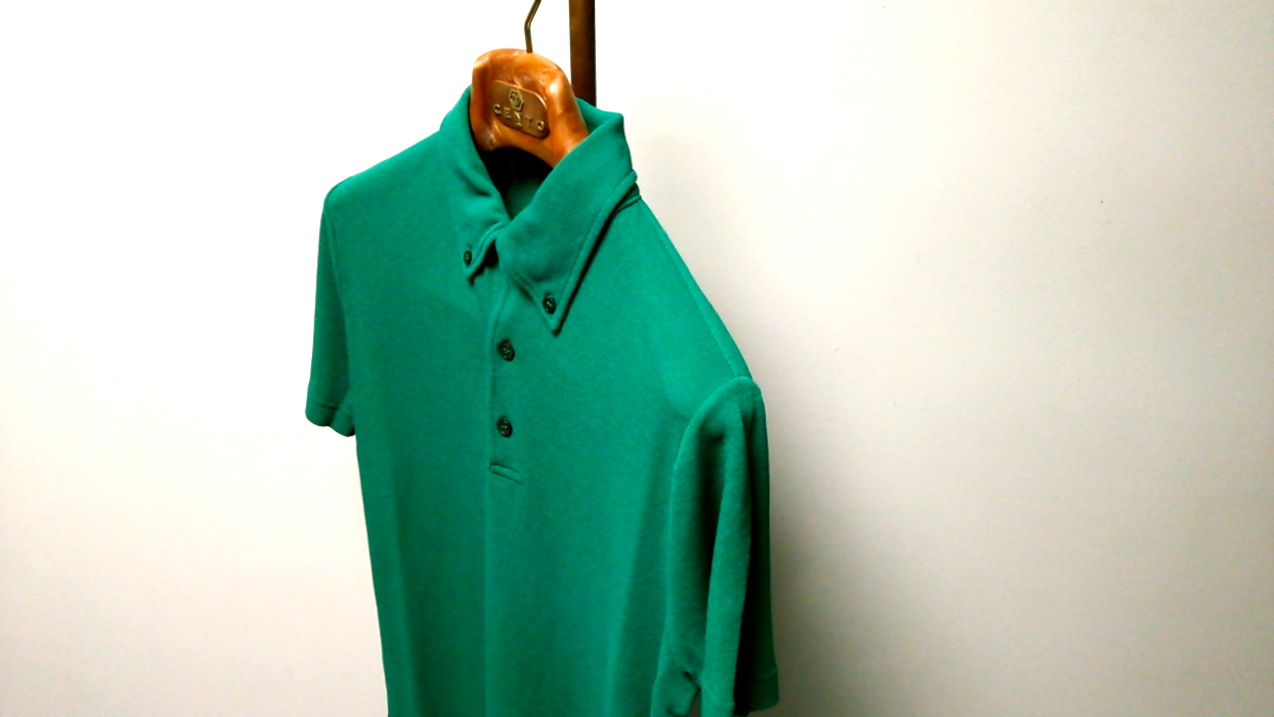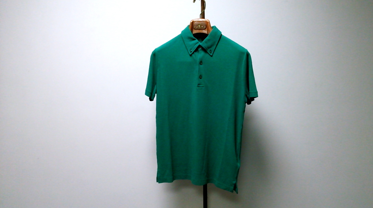 本日はZANONE/ザノーネのエクスクルーシブ、アイスピケを仕様したポロシャツ をご紹介します。色目はエコカラー、大地のグリーンです、コチラは小ぶりな」ボタンダウン衿を採用しています。