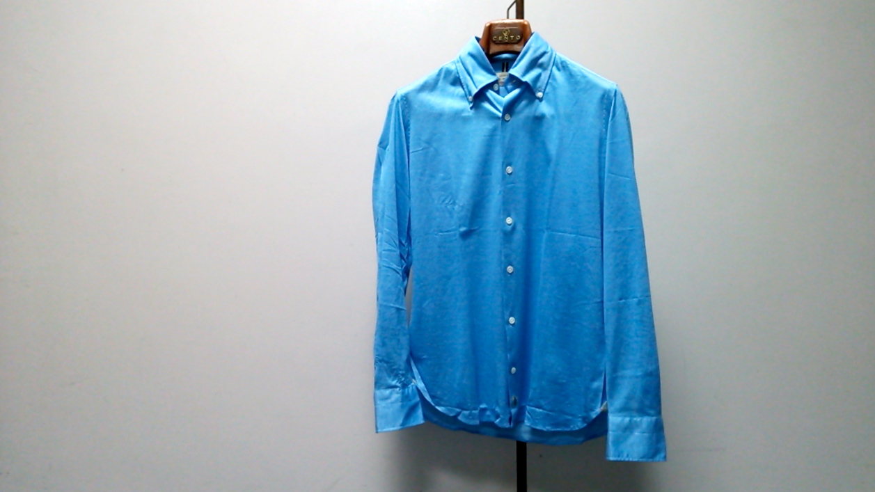 鮮やかなサックスブルーがとってもキレイな春にご機嫌なシャツになってます♪