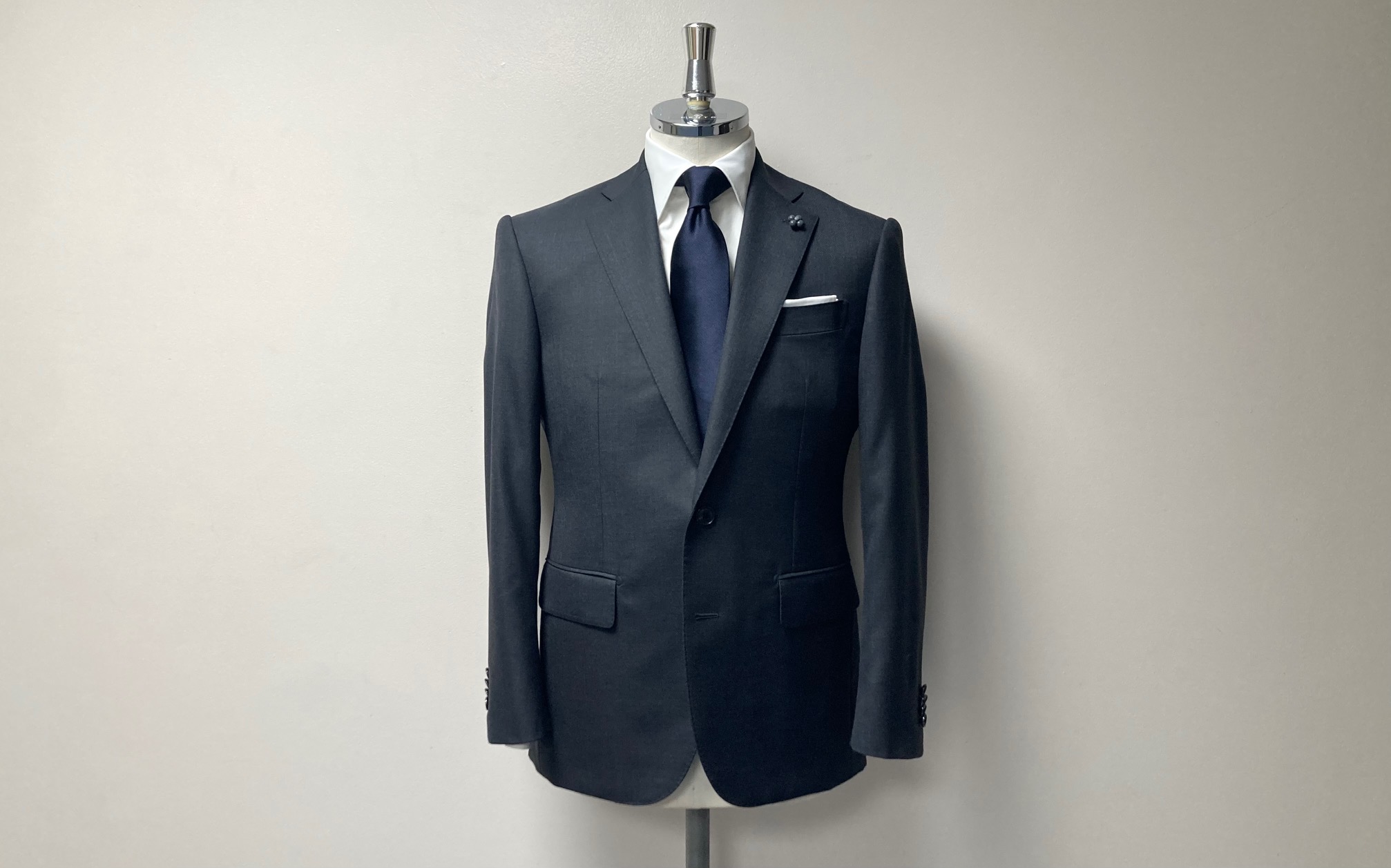 本日はイタリアの高級服地ブランド『FRATELLI TALLIA DI DELFINO/タリア・ディ・デルフィノ』の中からチャコールグレーの生地でご注文いただきましたオーダースーツをご紹介します♪