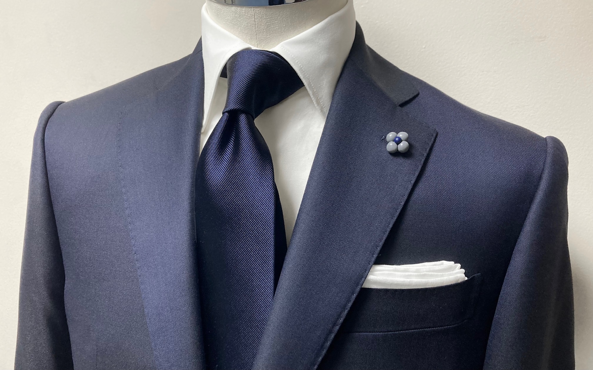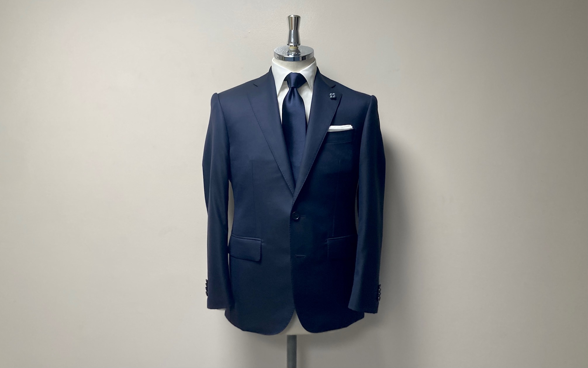 本日はイタリアの高級服地ブランド『FRATELLI TALLIA DI DELFINO/タリア・ディ・デルフィノ』の中からダークネイビーの生地でご注文いただきましたオーダースーツをご紹介します♪