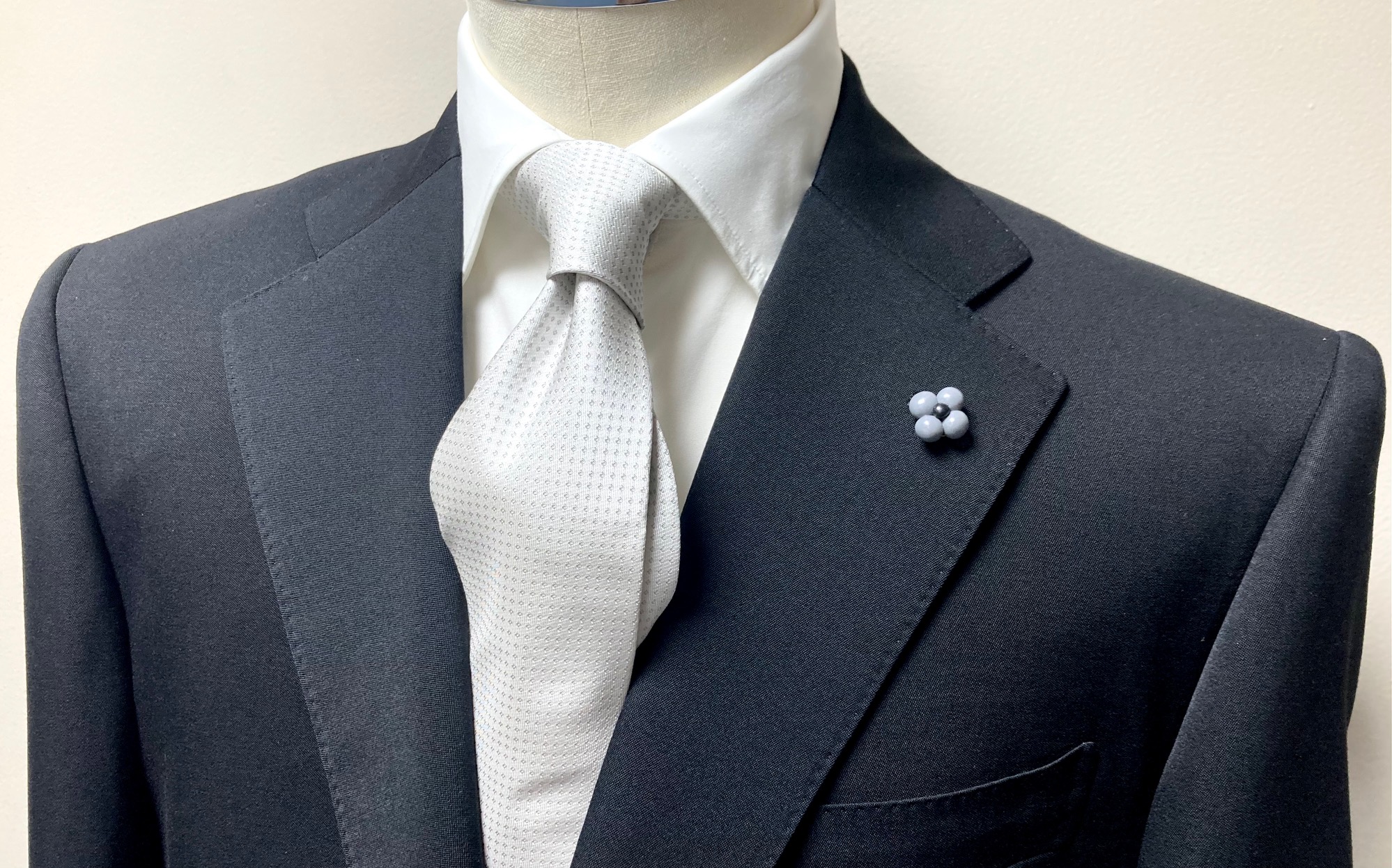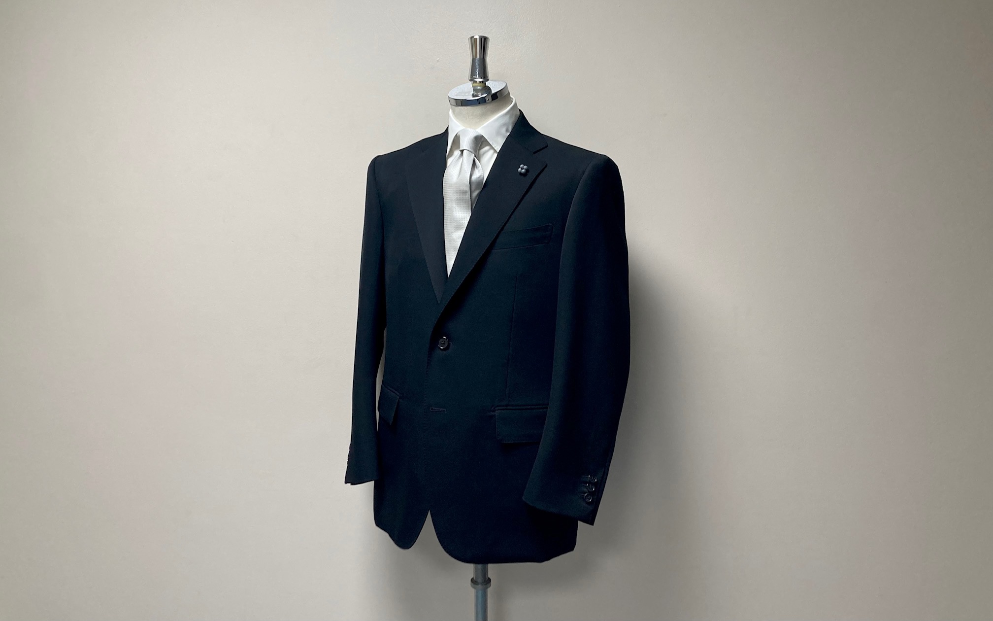 ラペルのコバステッチはお客様たってのご要望でしっかりとお入れしました!高品質で上品なフォーマル生地は御幸毛織の真骨頂です。