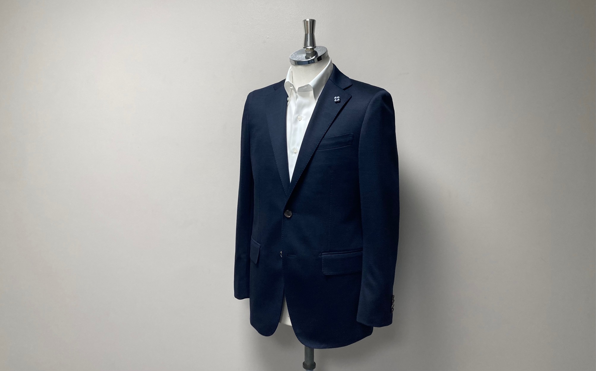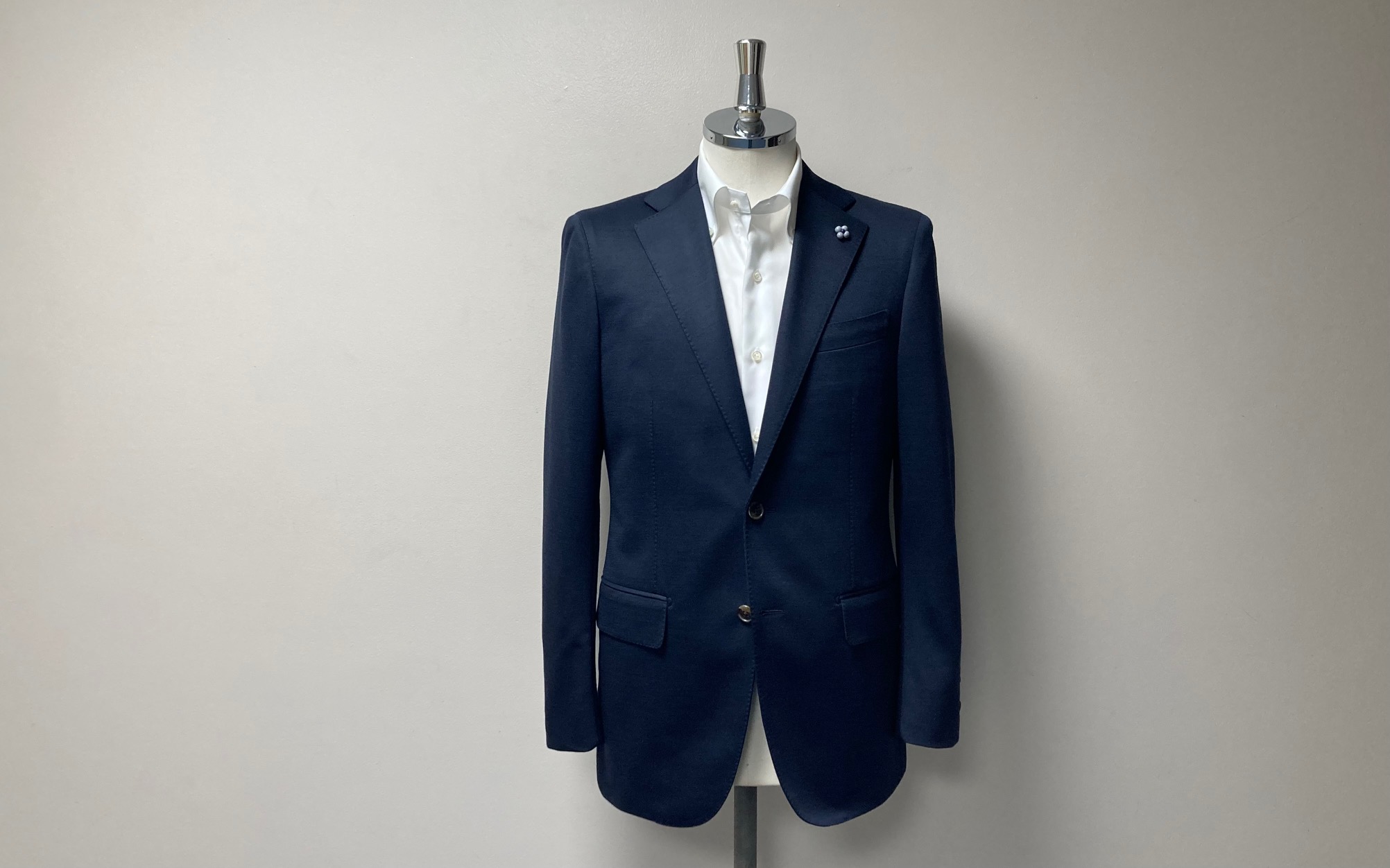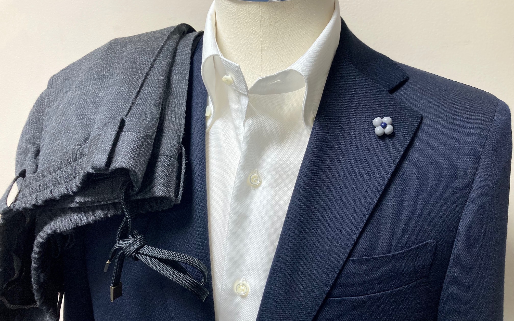 今シーズンにリニューアルで復活しました春夏むけのCENTOオリジナル・ジャージスーツ生地。ネイビーとチャコールグレーでジャケット&スラックスお仕立て、ご納品しましたのでご紹介します♪