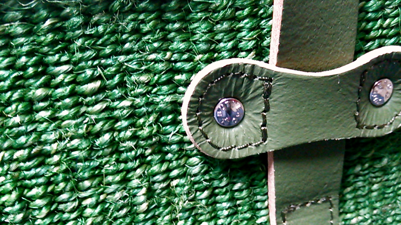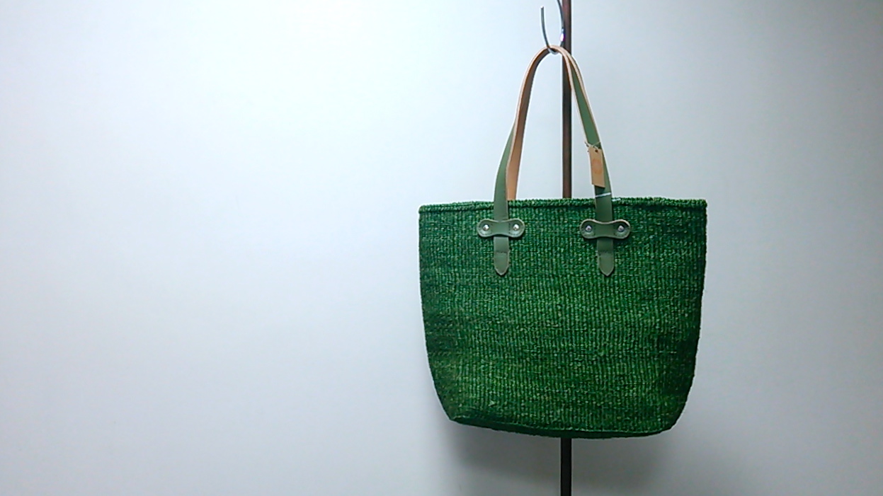 ミドリがとてもキレイで個性的。。男性だけでなく女性の方にも是非もっていただきたい、そんなかごバックです。