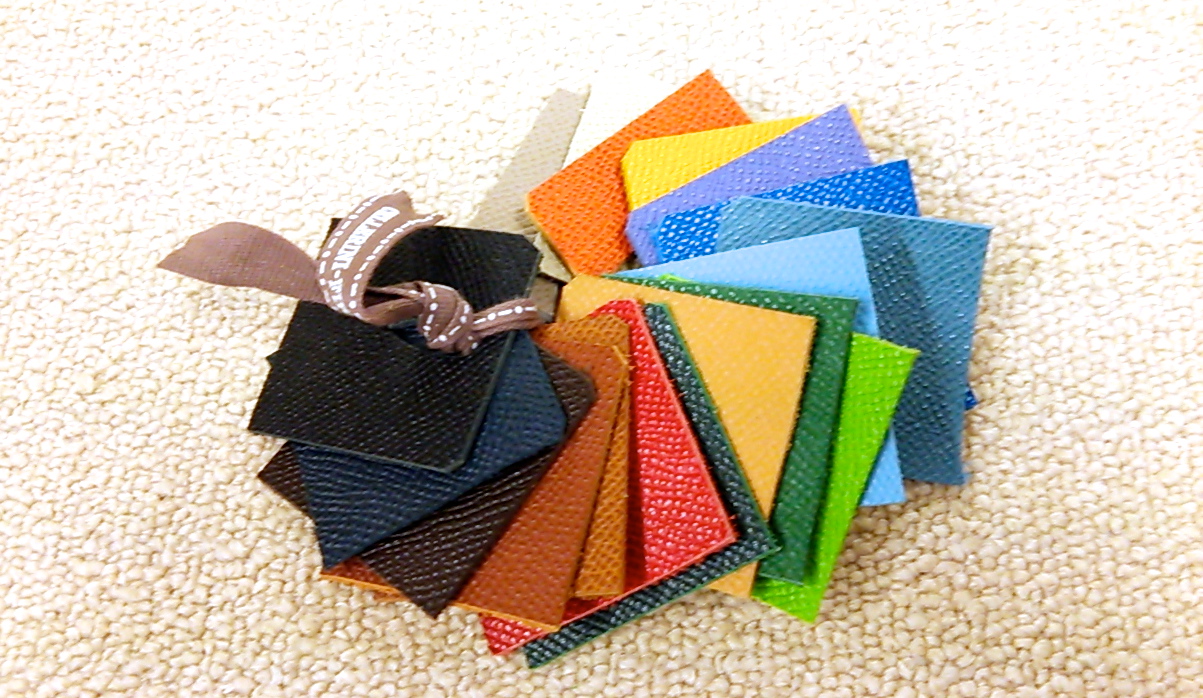 カバンの革や好みの色をお選びいただくカラースワッチも豊富にご用意しています。