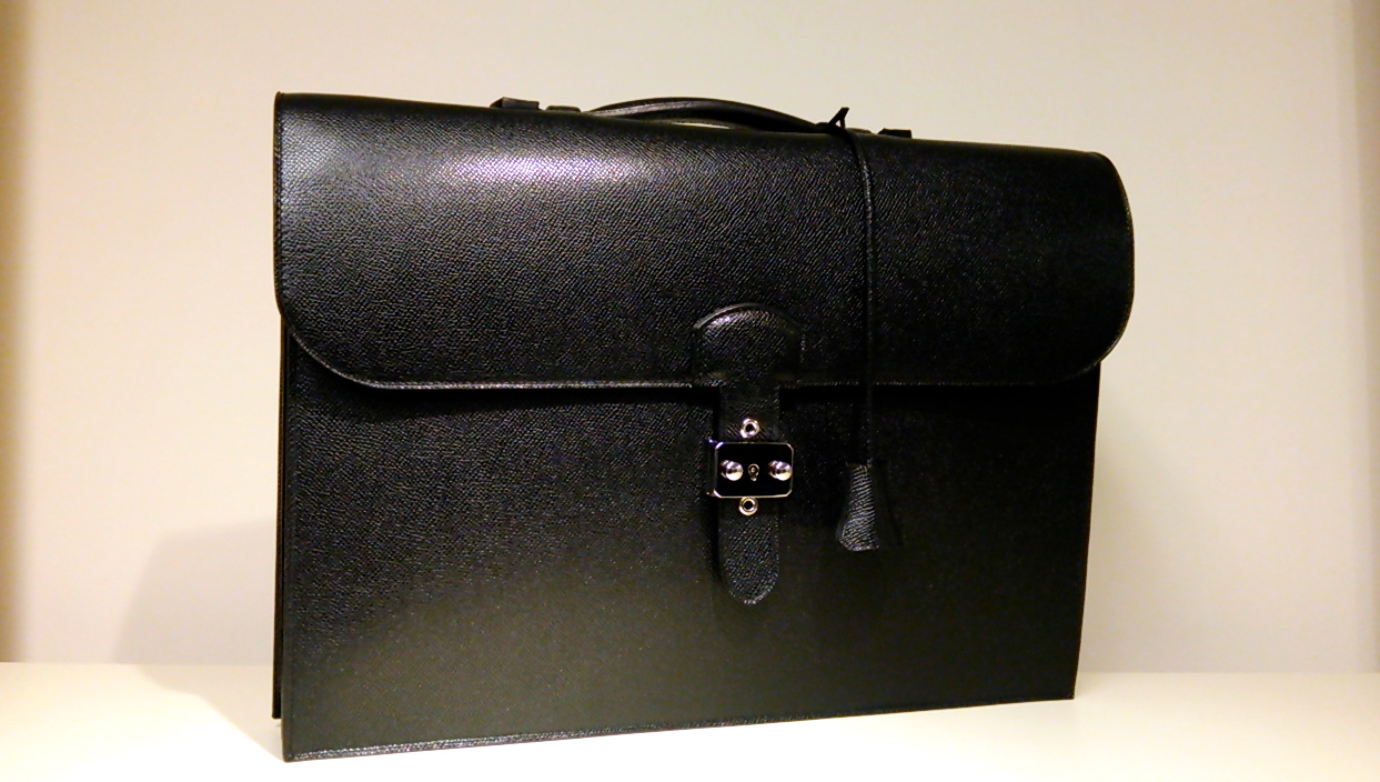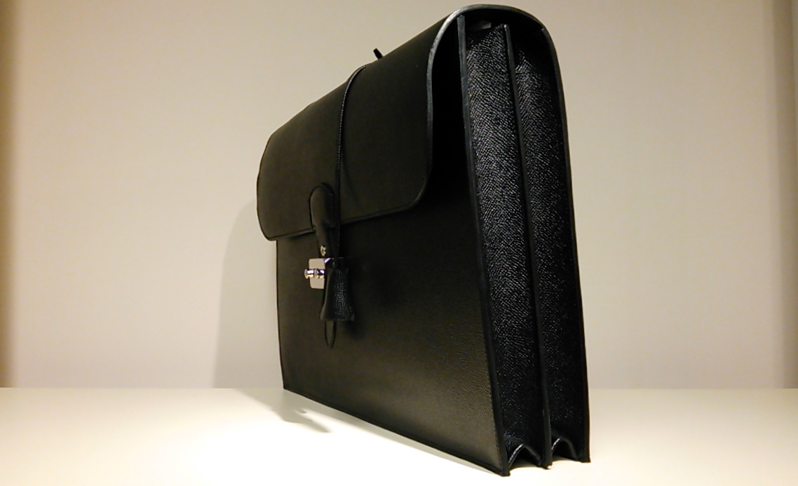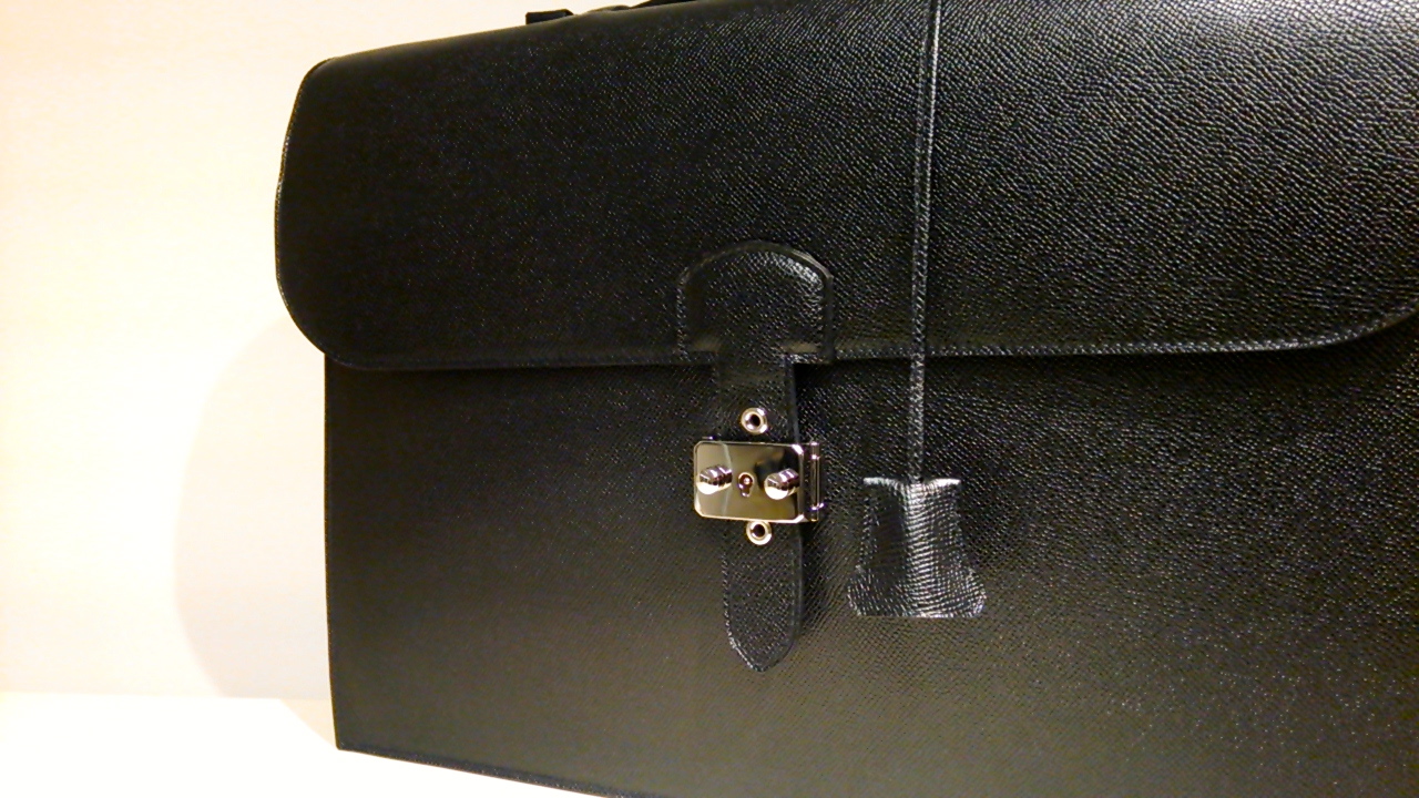 シンプルでタイムレスなデザイン。エルメリンカーフで仕立てられたブリーフバックからは、一種の神々しささえ覚えてしまいます。