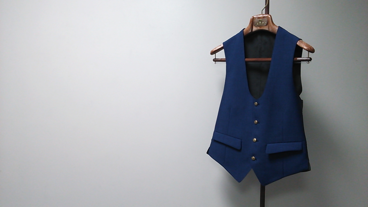 衿ナシの4ボタン、フロントカットは深めのラウンドをセレクト。