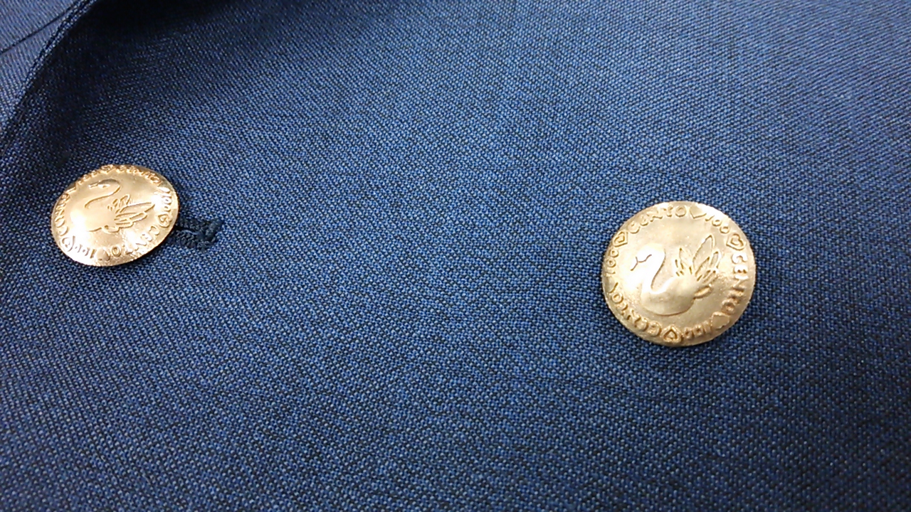 明るめのネイビーブルー地に合わせてボタンはCENTOオリジナルのアンティークゴールドのメタルボタンを使用しています。