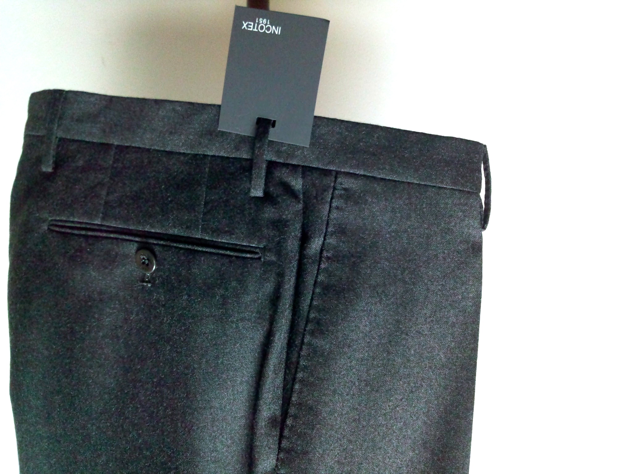 インコテックス最大の魅力は、インコ独自の導き出されたパターン(型紙)とそのパターンを立体的にを形成していく縫製の技術と感覚が究めて素晴らしいからなのだと思います。穿いたときの美しいシルエットや他の追随を許さない穿き心地はさすがインコといった感じです。