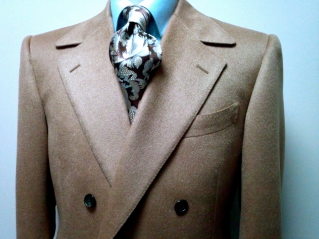 生地は上質な英国産のカシミヤ100%で明るめのキャメルをお選びいただきました。