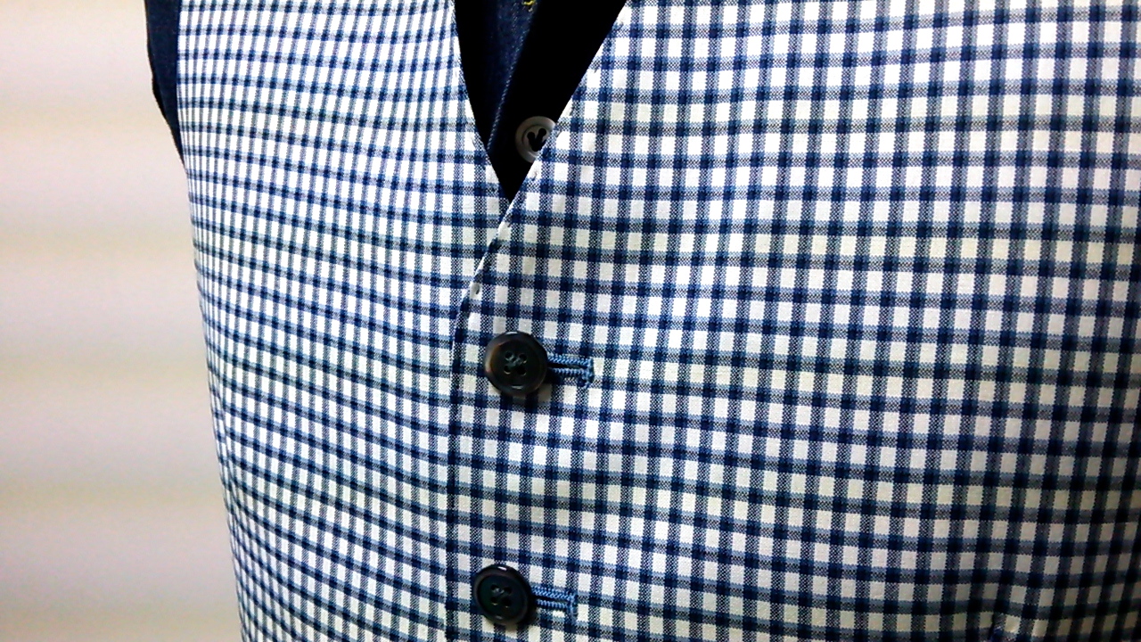 生地はドーメルのAMADEUS 365 JACKETINGS の中から紺系×白のチェックをチョイス。