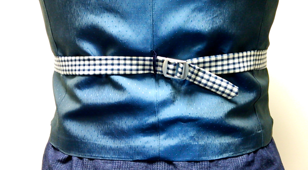 背中にはサイズ調整可能な尾錠ベルトを付けました。実用性にも優れ見た感じもデザインのアクセントに良いです。
