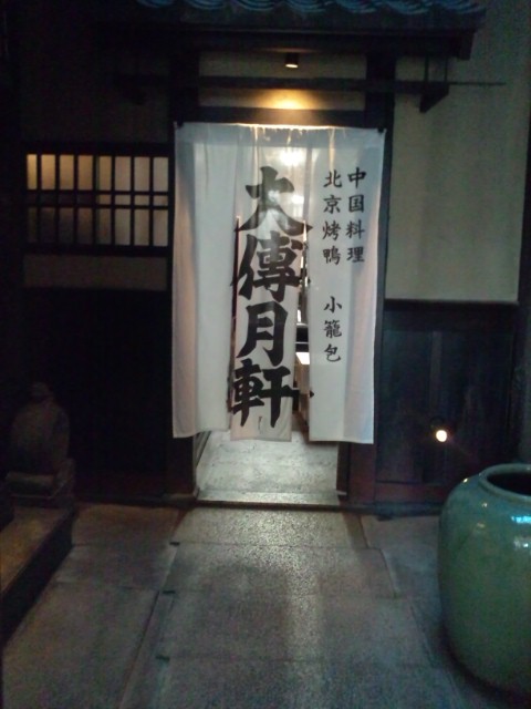 お客さまから教えていただいた「ふかひれラーメン」が絶品の「大傳月軒(ダイデンゲッケン)」という店名の中華料理店です。場所は四条木屋町通りを高辻通りまで下がったところです。建物は大正時代の洋館と、明治時代に建てられた京町屋が融合する空間に中国文化を再現されているらしく、ホームページで見た印象よりも、良い雰囲気のお店というのが第一印象でした。