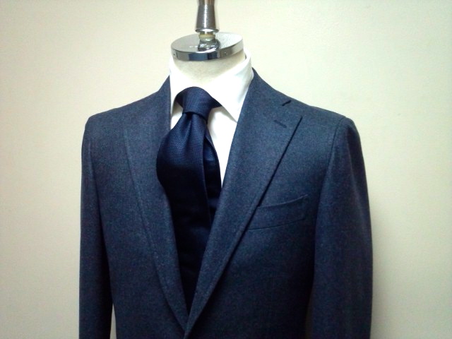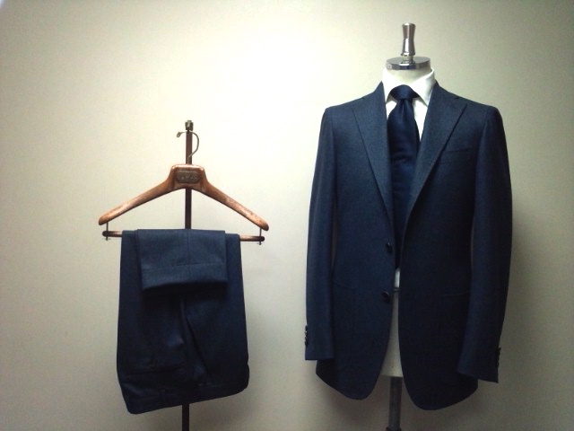 生地はCANONICO(カノニコ:伊)のフランネル、カラーはグレーみがかったネイビーブルーです。