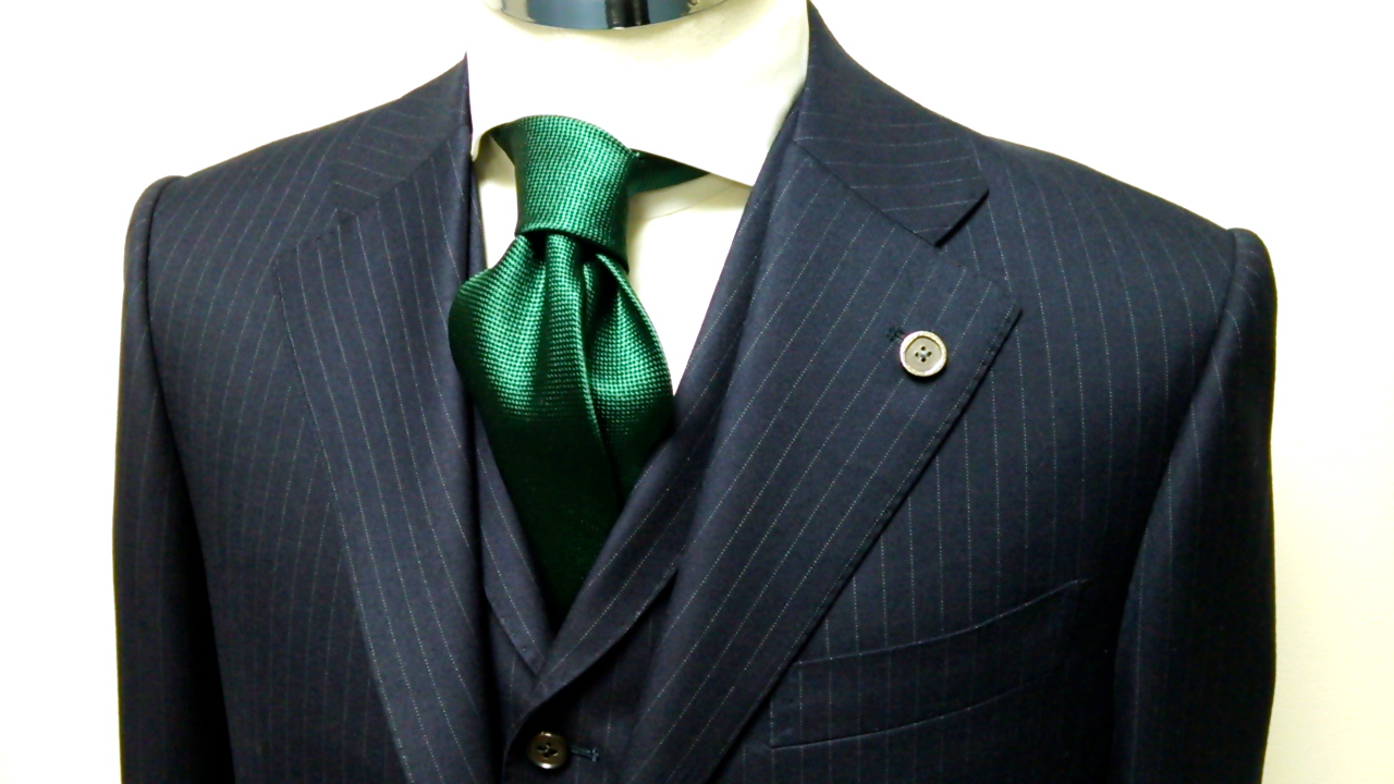 ネイビー地に硬派なピンストライプを選ばれるところはクラシックな趣を大切なされるKさまならでは。CENTOでも屈指のマリネッラ・オーナーのKさま、今回のスーツにもマリネッラを合わされるのですね ♪