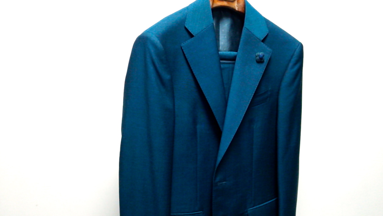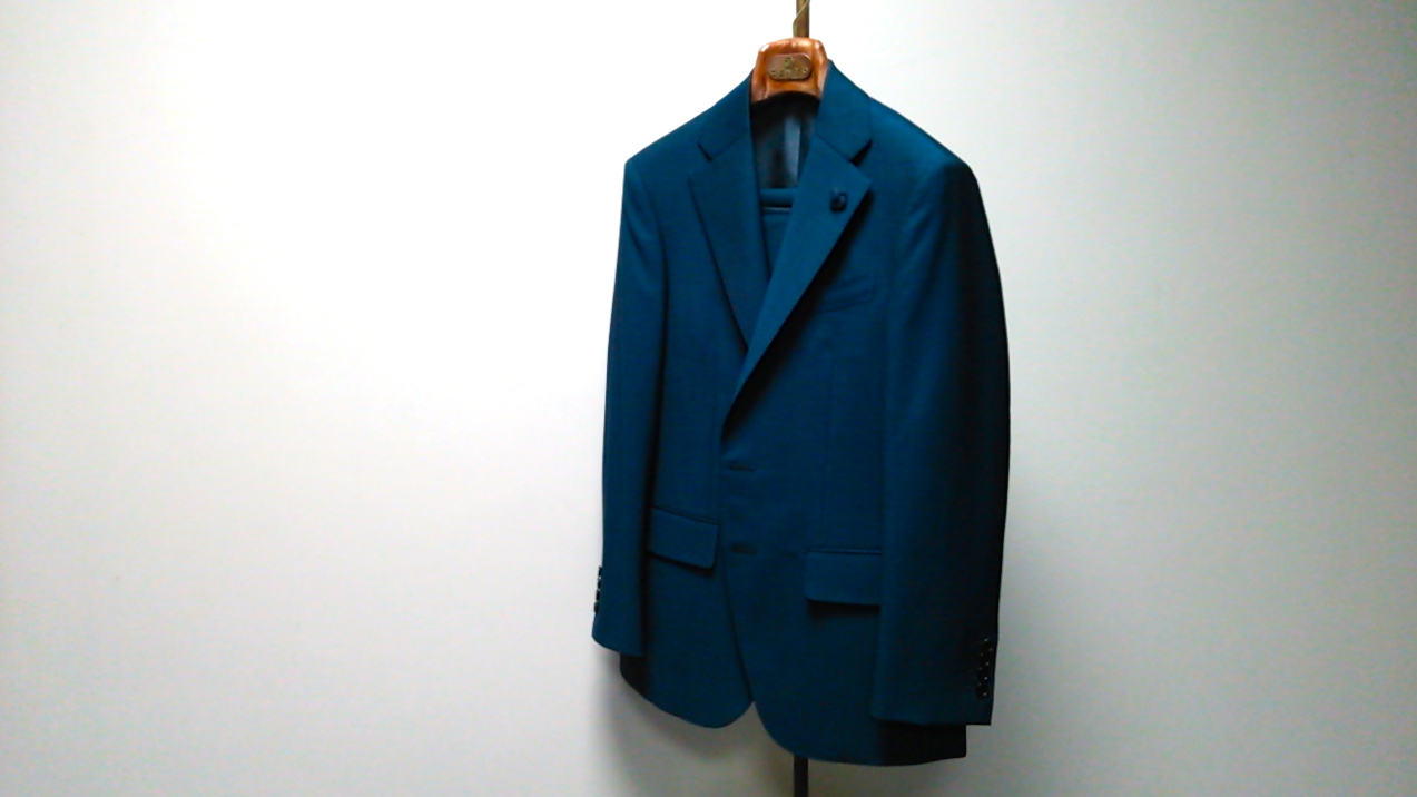 CENTOでは珍しい色目になりますかね、深くてやや青みがかったミドリ色のスーツが仕立て上がりました。