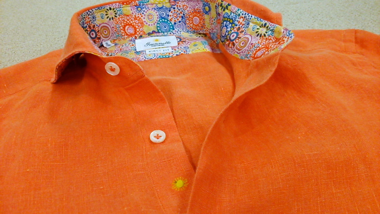 イタリアのカミチェリアからGiannetto/ジャンネットのキレイなオレンジ色のシャツが入荷しました。素材は上質なリネン麻100%を使用しています。