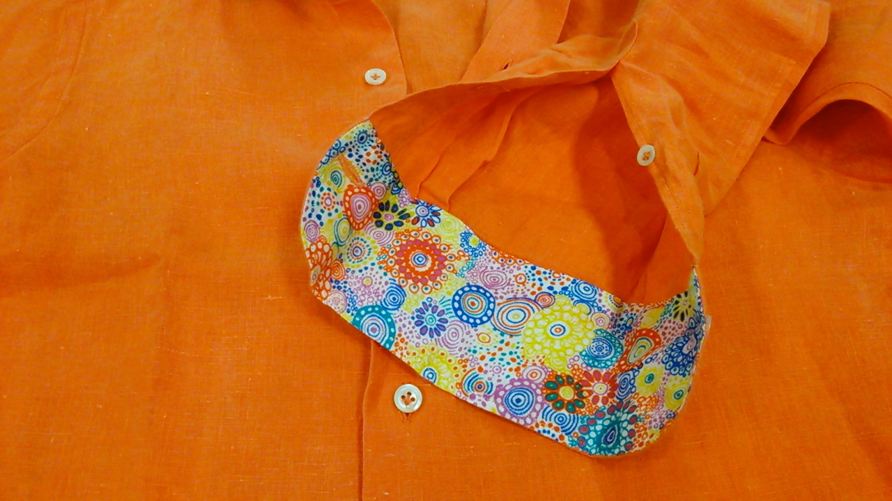 襟元とカフに使われているプリント。流石はイタリアのカミチェリア、イケイケです♪