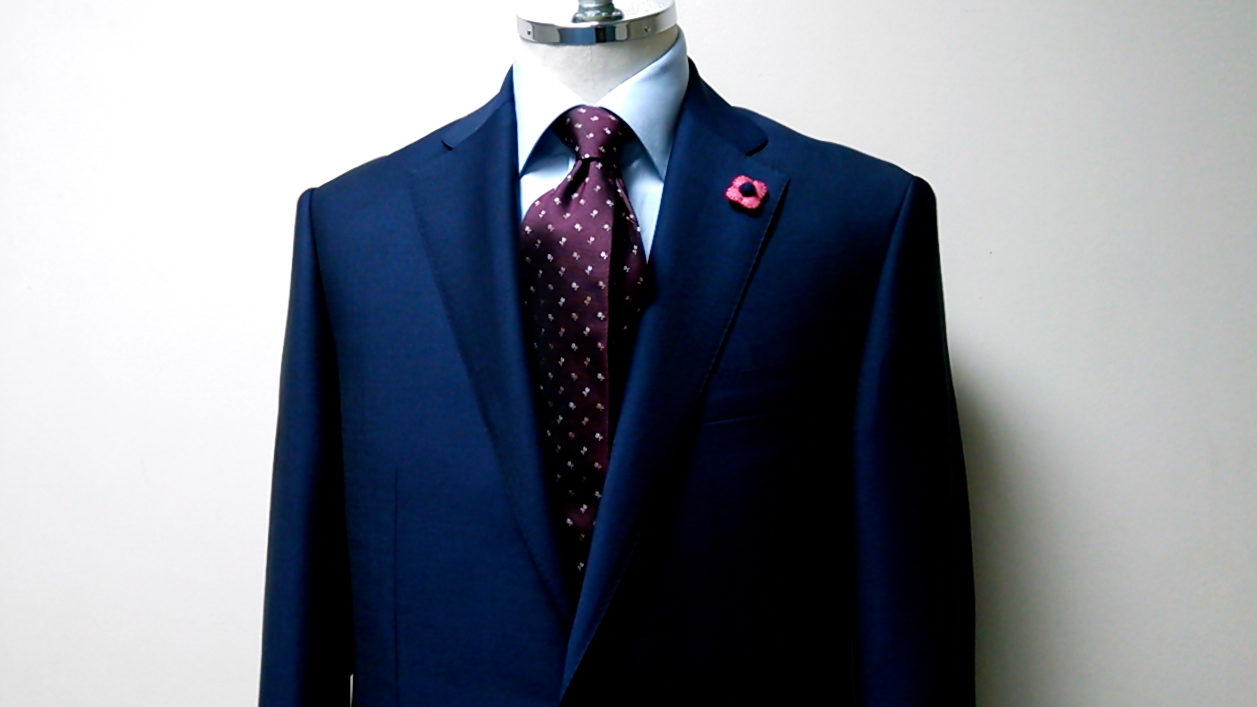 まずはウール・キッドモヘヤ混のネイビーブルーがとても美しい2釦のシングルです。