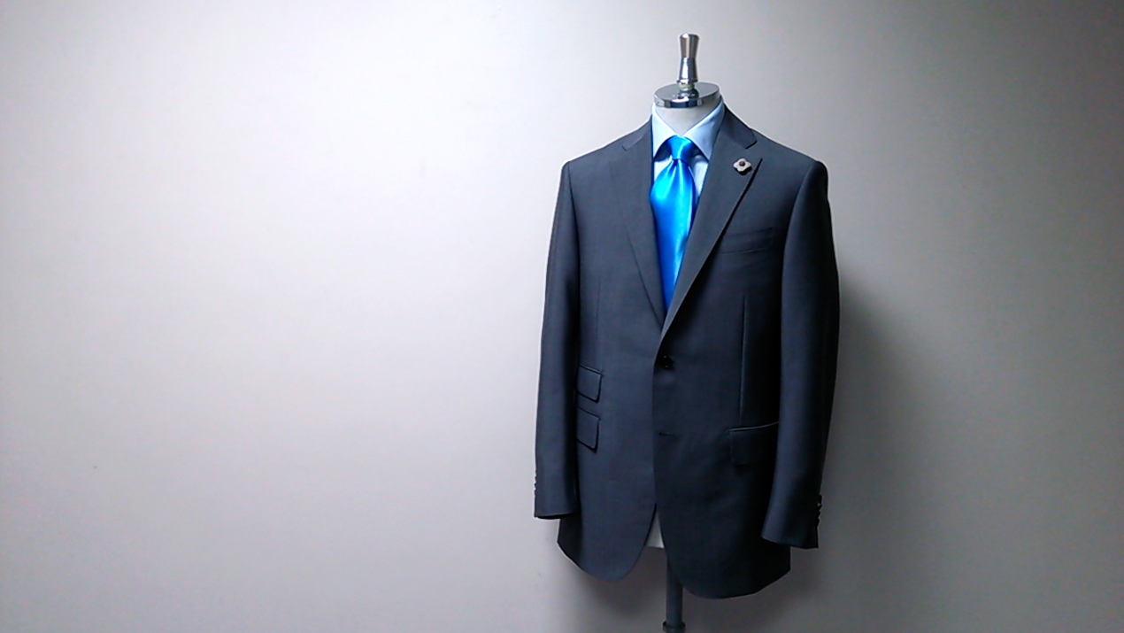 2着目はウール・モヘヤ混の生地を使ったミディアムグレーのスーツです。こちらにはアクセントにチェンジポケットを配しています。