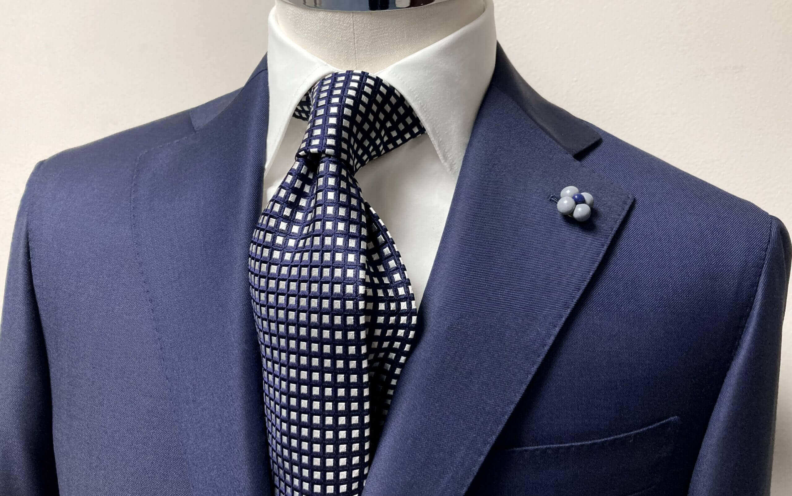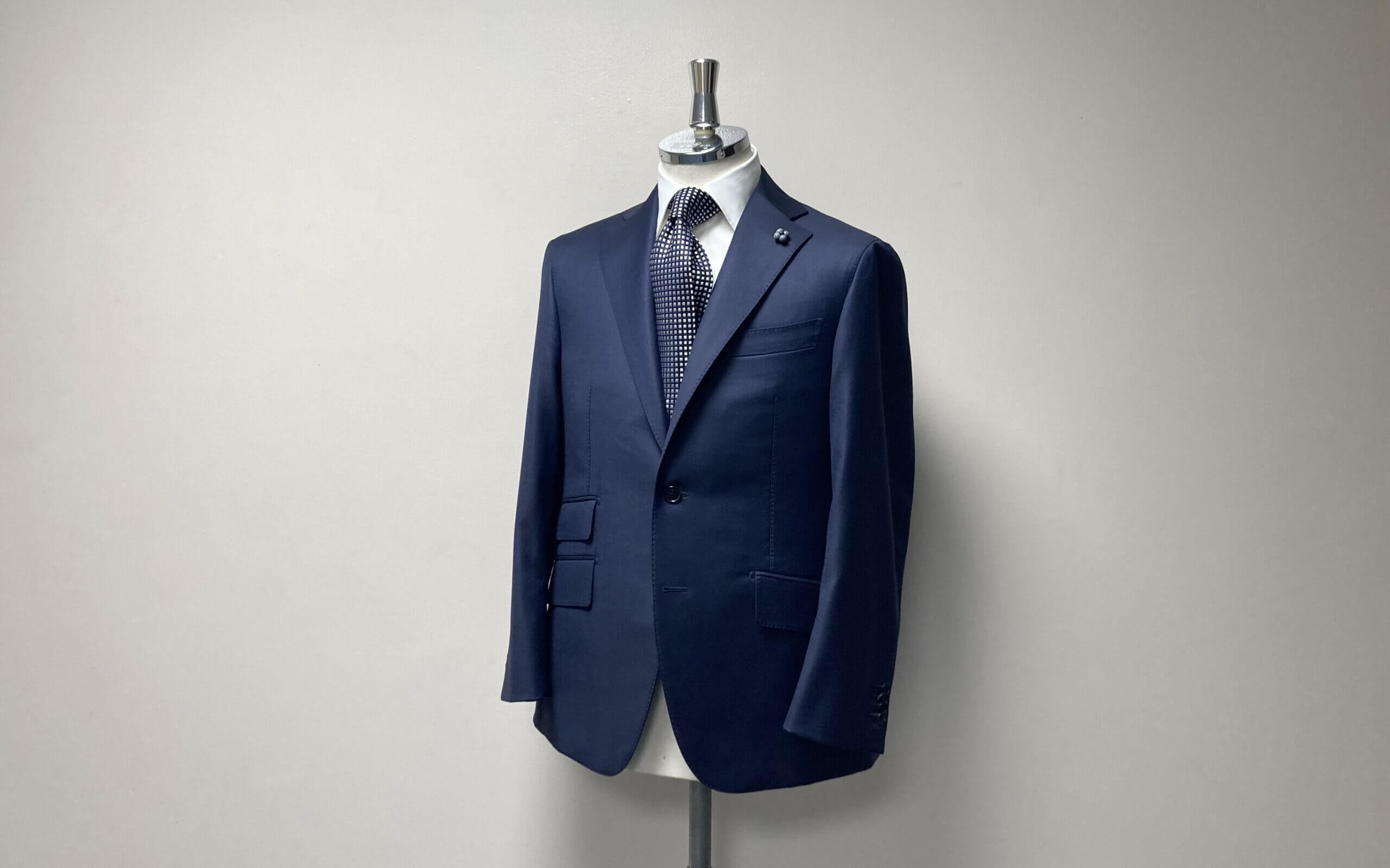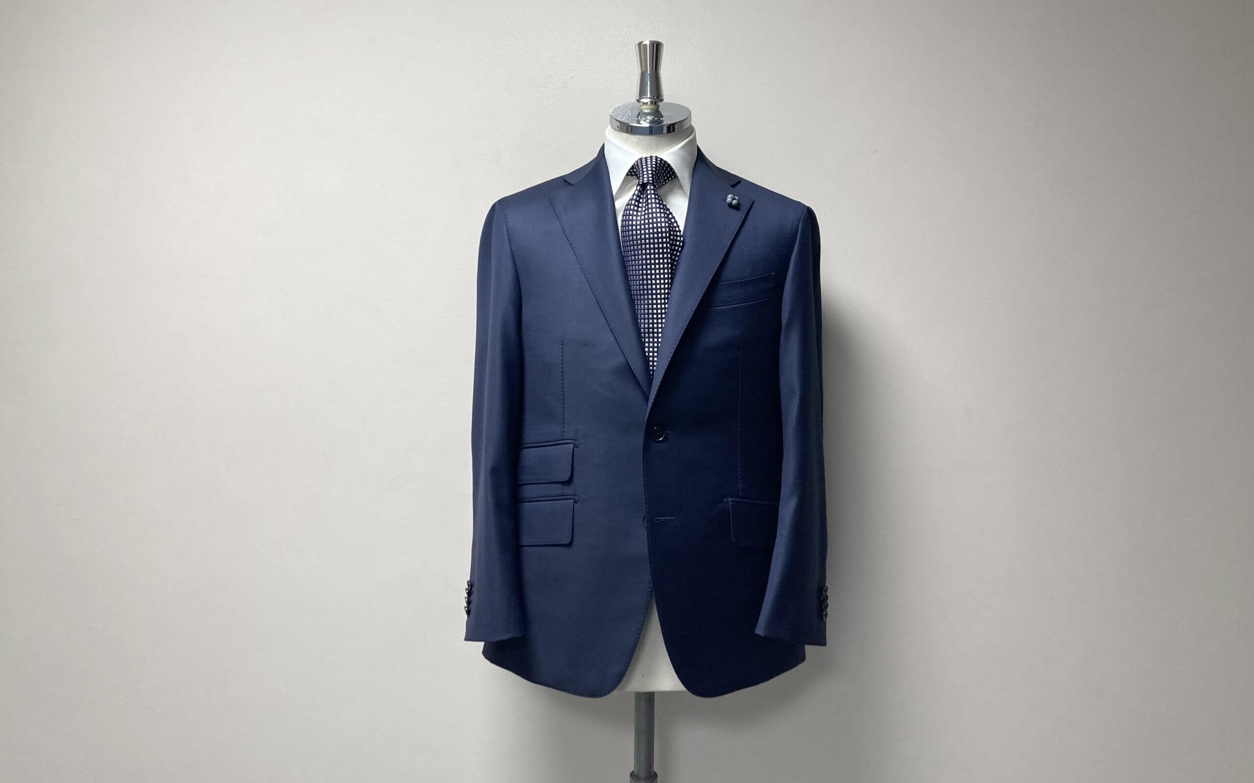 60代会長様からのオーダー。CENTOでご用意している着分生地(最後の1着分)の中から、DORMEUIL/ドーメル『EXEL BLUE/エクセル ブルー』の、ネイビーを気に入っていただきご注文に。