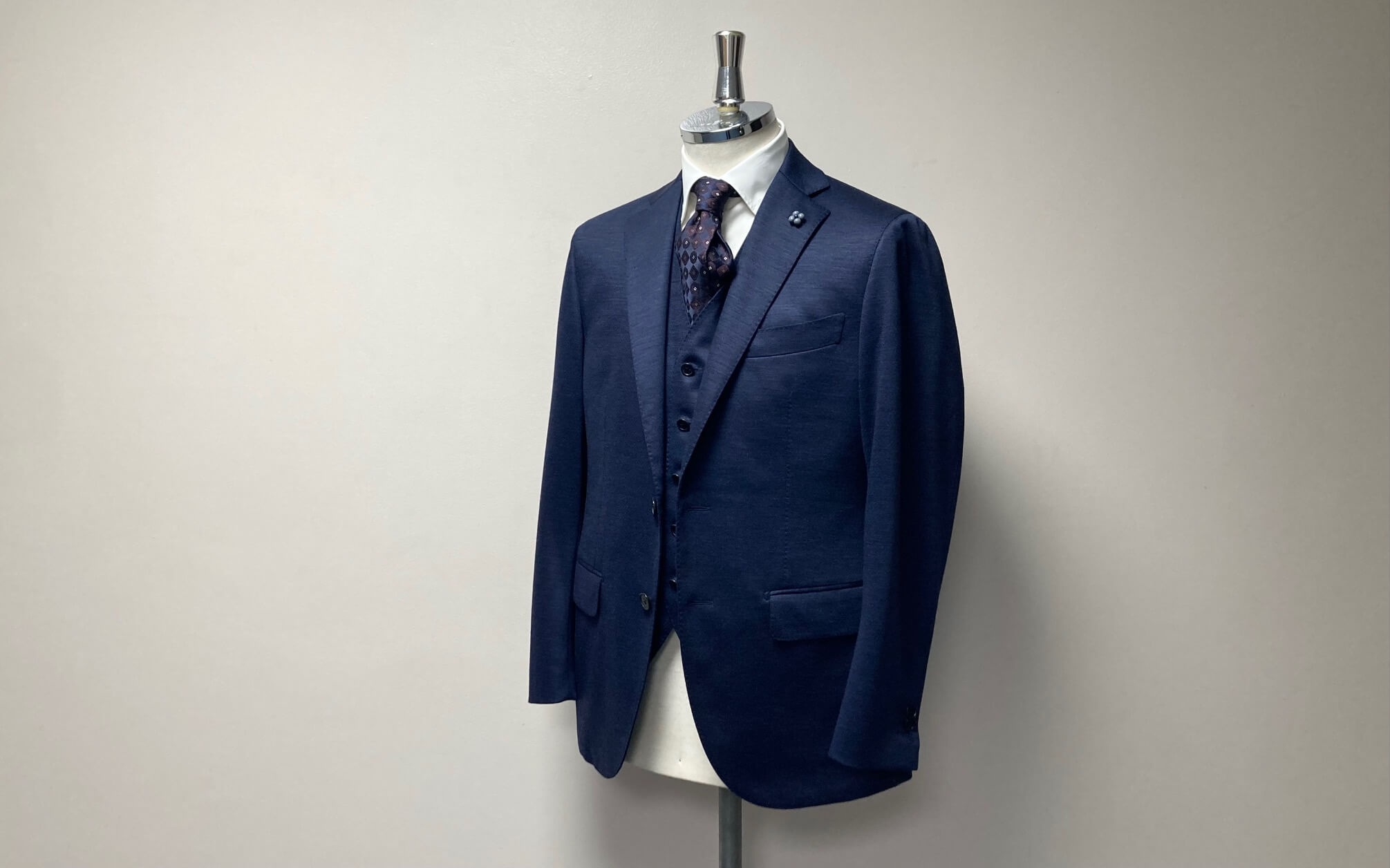 今シーズンにデビューしました、オーダー可能なジャージスーツの進化系『CENTO AIR/エアー』。ウール100%のネイビー・スリーピースを、ご納品しましたのでアップします♪
