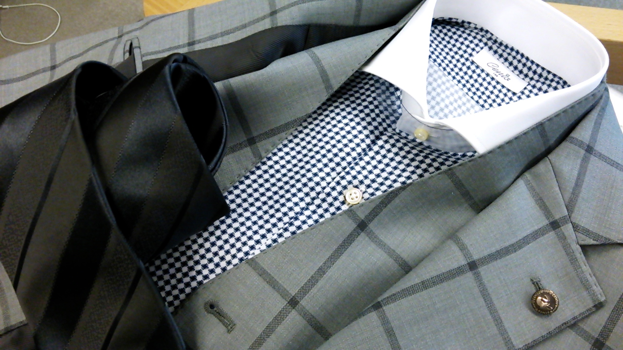 オーダーで仕立てたカッコ良いスーツにはやっぱり身体にフィットしたオーダーシャツがイイと思うんですよね!既製のシャツではサイジングに限界がありますので。。