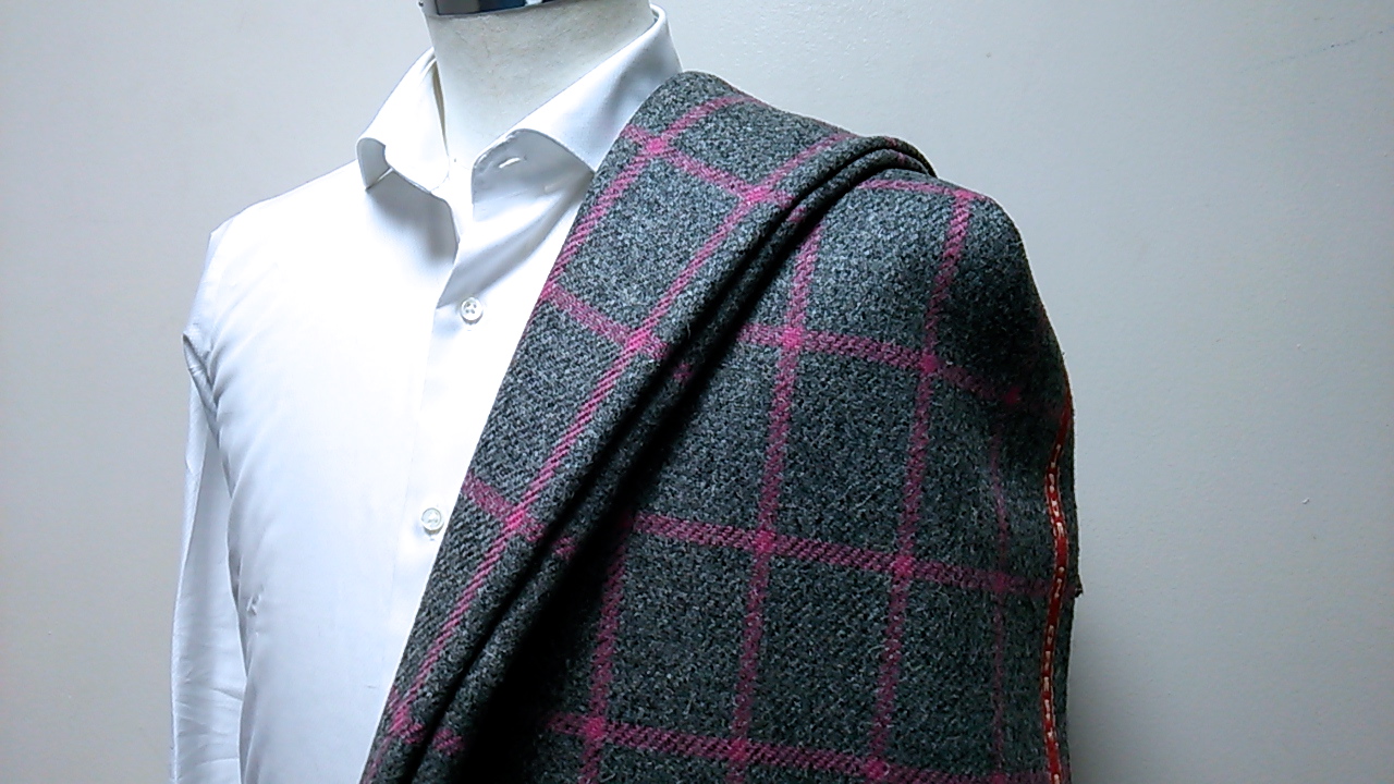 記念のツイードと刻まれたその生地は「HARRISONS OF EDINBURGH」が創立150周年を記念して2013秋冬に向けて全10色柄で世界?十着限定でリリースされたツイード生地です♪