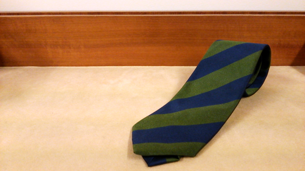 「今です!」☆メローラ製 紺×緑の幅広レジメンタイ