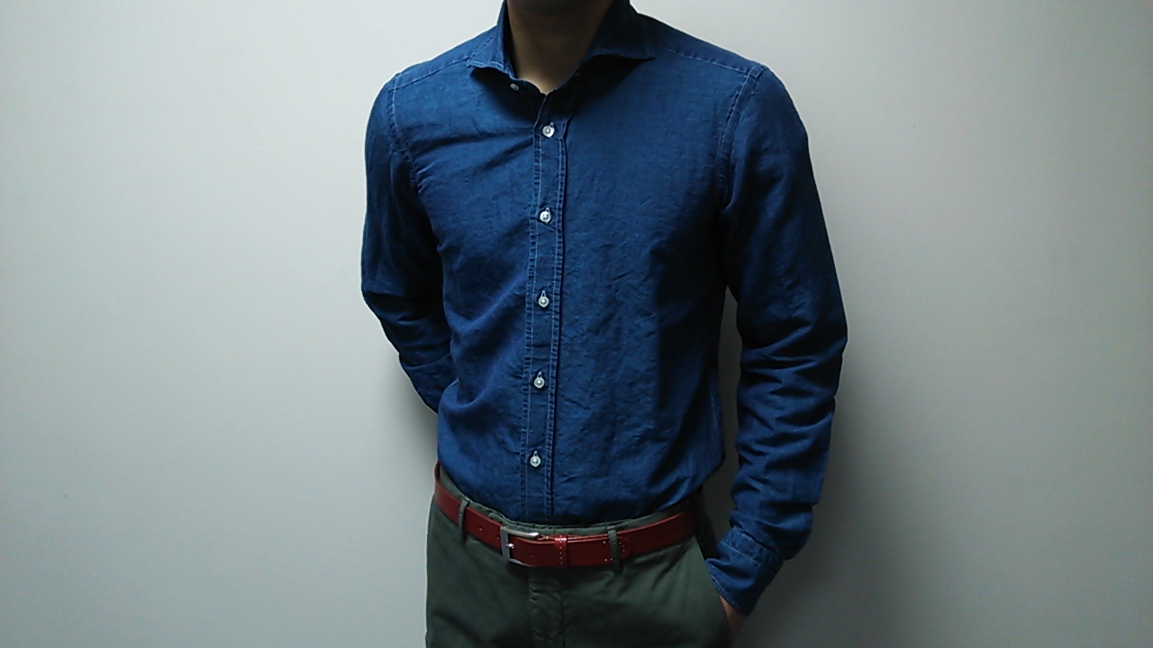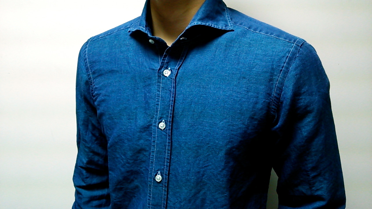 インディゴブルーにホワイトステッチがさりげなくて可愛いらしいシャツです。