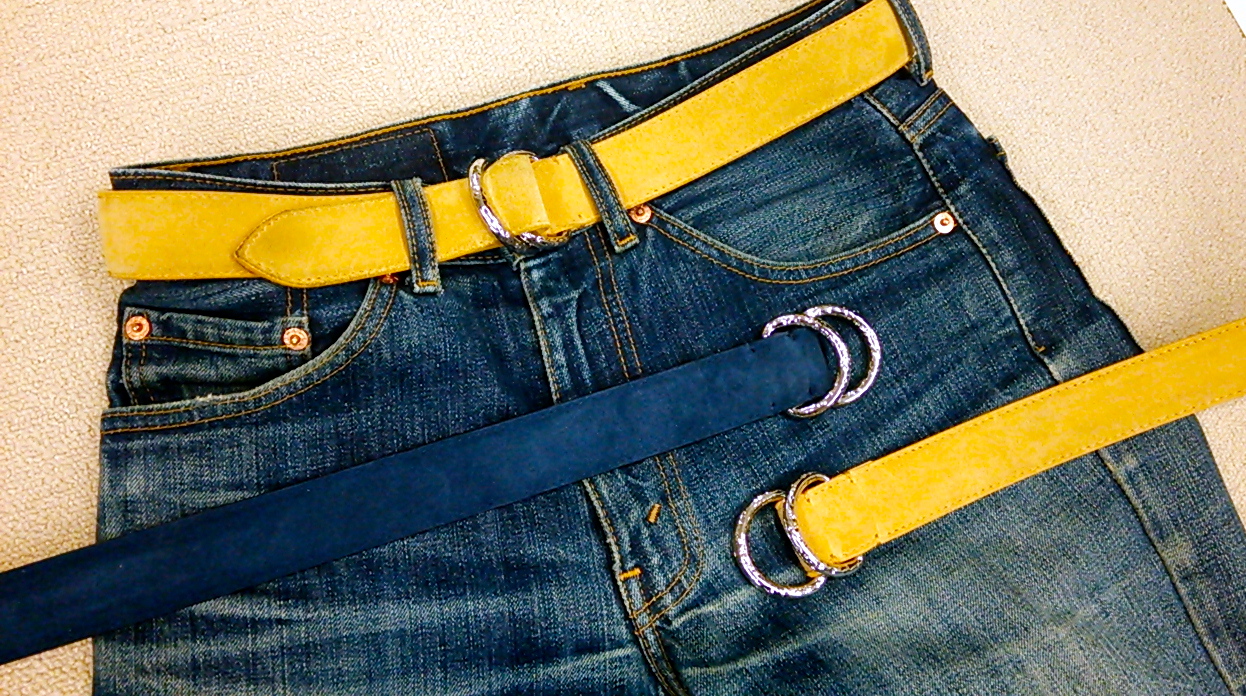 以前からコナレタ金額でカッコいいリングベルトをCENTOで扱えないものかと探していたところ、このサドラーズのリングベルトと出会いました。で、実際半年前に発注しこの春夏に入荷してきたのですが、、、「イイんです♪」コレが。。ソフトタッチな質感の良いイタリアンカーフスエードとランダムに彫金されたバックルがとてもイイ感じなんです。